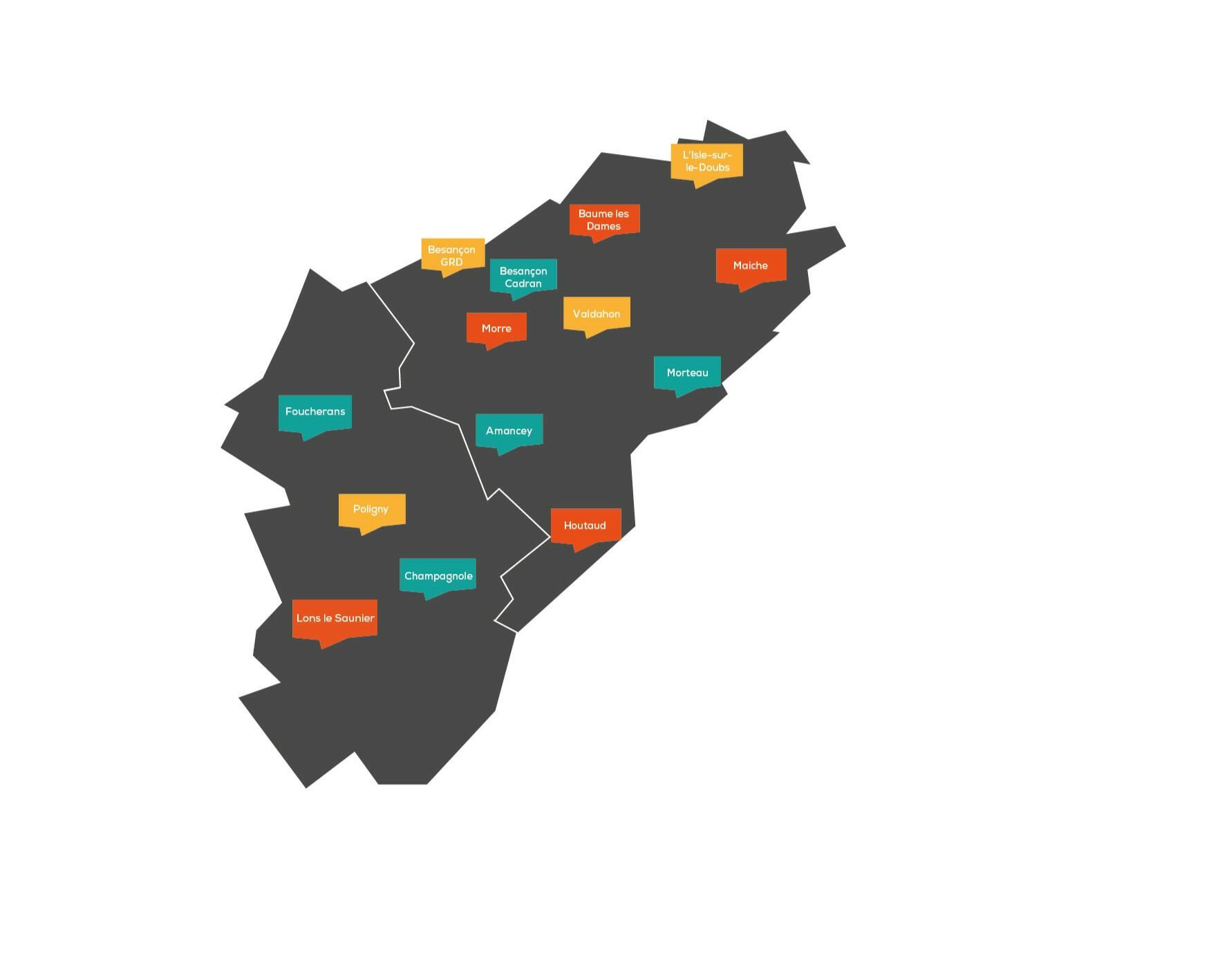 Retrouvez nos agences présentes dans le Doubs et le Jura :